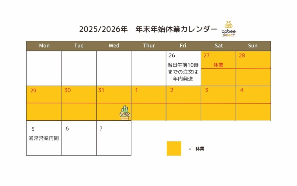 休業期間:2025年12月27日(土)~2026年1月4日(日)