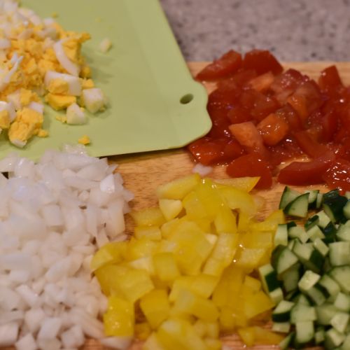 • 黄パプリカ: 1/6個  → 5mm角に切る