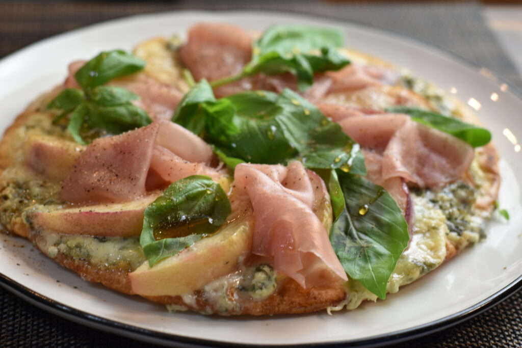 はちみつレシピ【はちみつと桃のゴルゴンゾーラピザ】