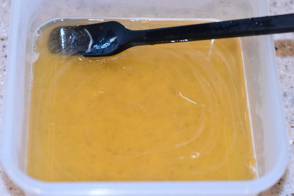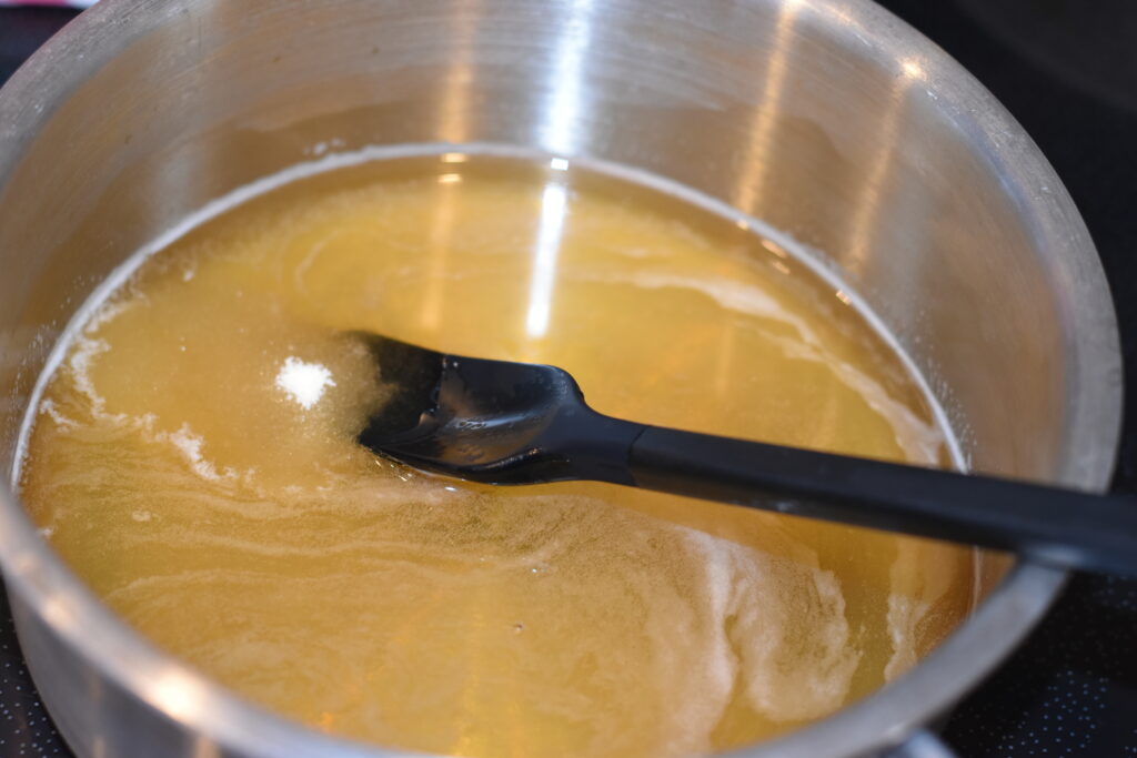 粉ゼラチン以外の材料を先に鍋で軽く温め、粉ゼラチンを入れ溶かしながら均等に混ぜる