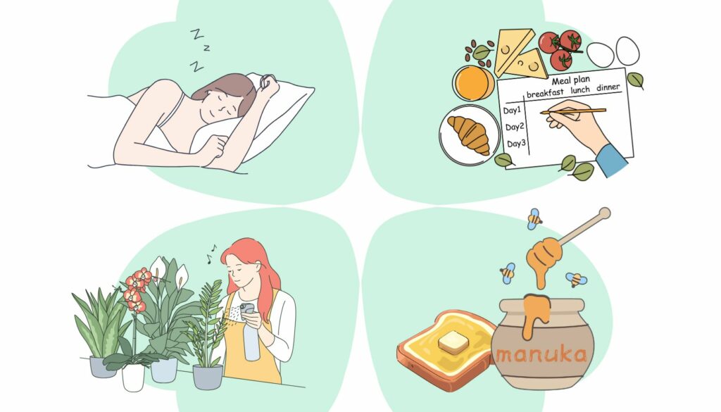 マヌカハニーの力を最大限に活かすには、日常生活の工夫も欠かせません。基本的な健康習慣と組み合わせることで予防効果はさらに高まります。