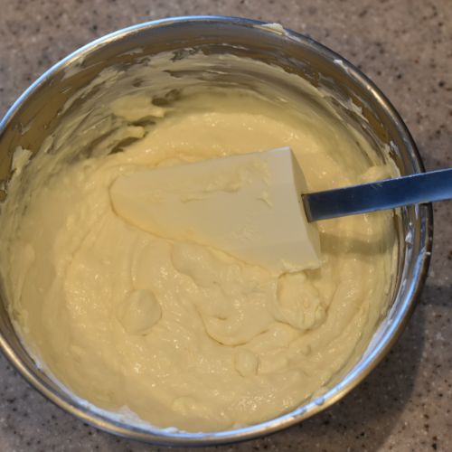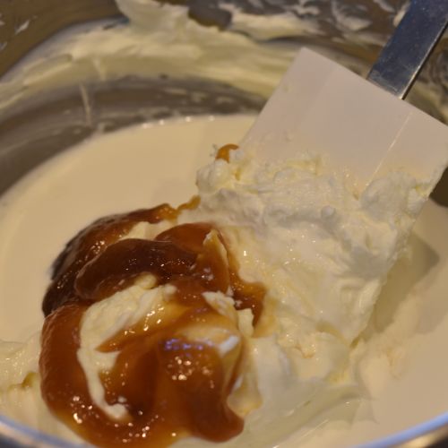 ②常温に戻したクリームチーズをボウルでなめらかになるまで混ぜ、生クリーム、マヌカハニー、レモン汁を加えてしっかり混ぜる